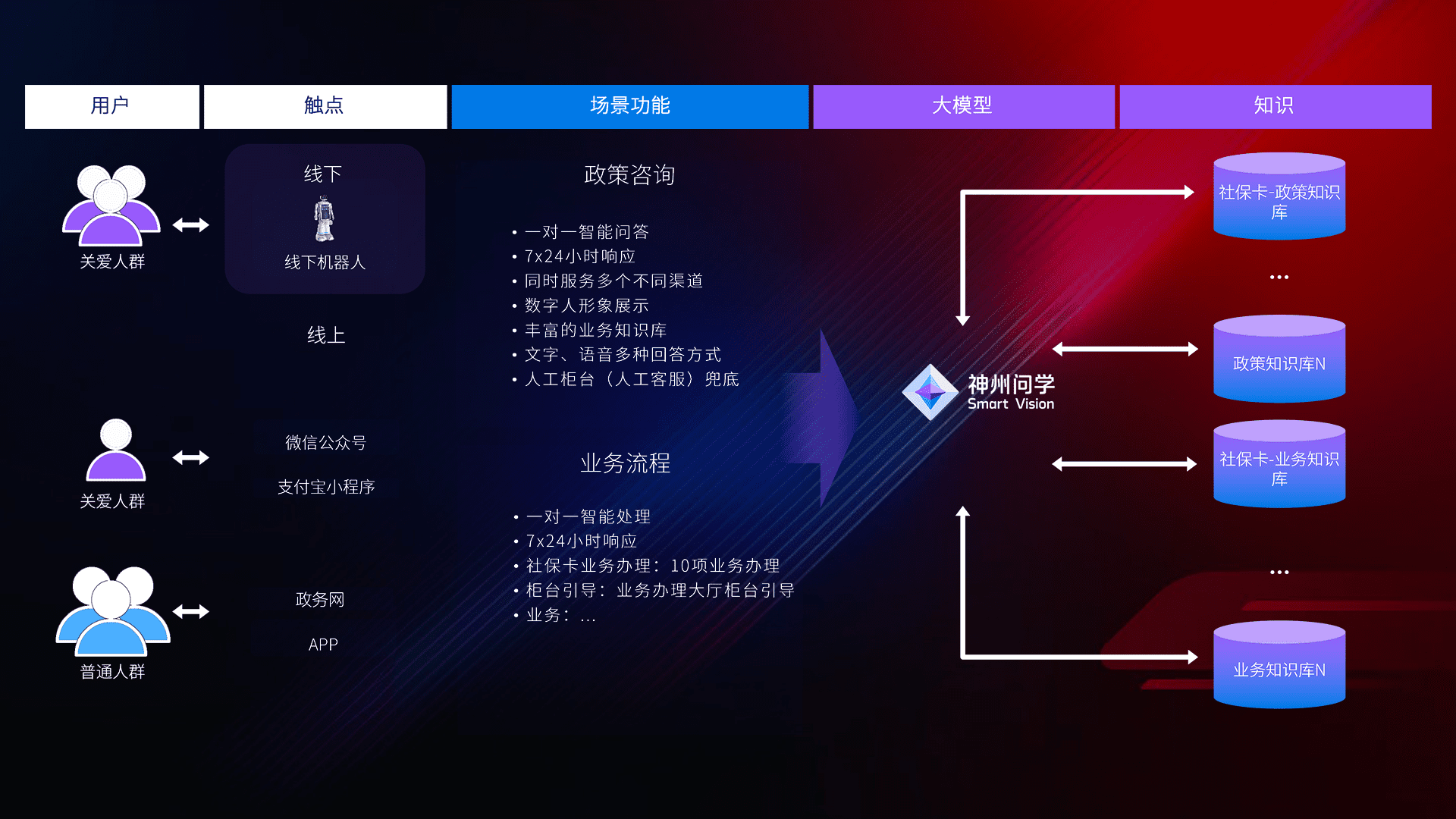 在服务大厅部署客服机器人,,,在线上应用和小程序配置客服数字人,,,724小时为群众解答常规问题,,,客服机器人无法处理的,,,转现场人工处理。。。
